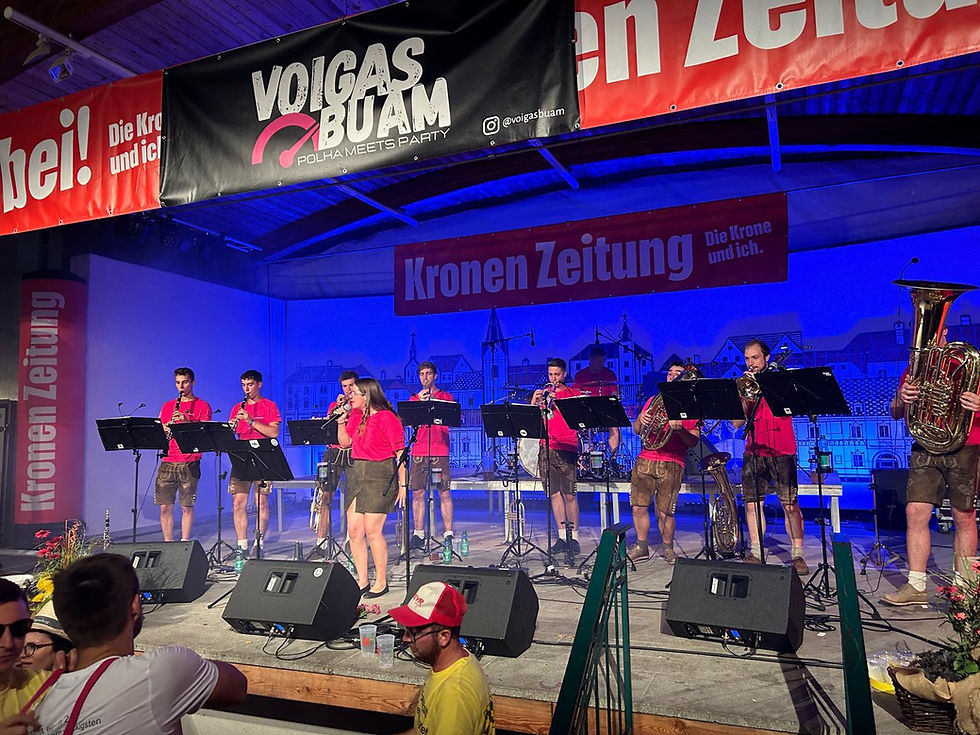 Die „Voigasbuam“ – eine neunköpfige Abordnung des Musikvereins der Pfarrgemeinde Windischgarsten – stehen für Musik, die verbindet, begeistert und zum Feiern einlädt. Ihr Motto Polka meets Party ist dabei Programm: Die perfekte Mischung aus traditioneller Blasmusik und moderner, mitreißender Unterhaltung macht sie zu einem Garant für Stimmung.